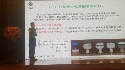 來自遼寧中科生物工程的聶宏光助理研究員做了《聚氨酸肥料增效技術介紹》的主題報告,從技術來源、技術機理、應用效果等方面,全面介紹了盛源聚氨酸增效肥料產品的特點與優勢。