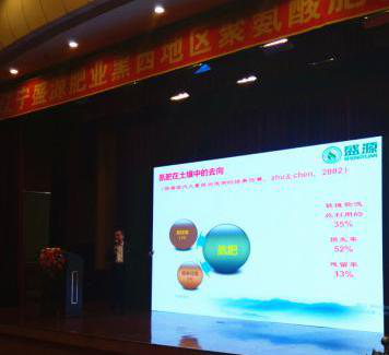 公司農化部部長佟文志經理做了《盛源聚氨酸肥料產品及營銷效果》的專題報告,從田間實際出發,向與會者詳細展示了盛源聚氨酸肥料在不同區域及不同作物上的良好應用效果。